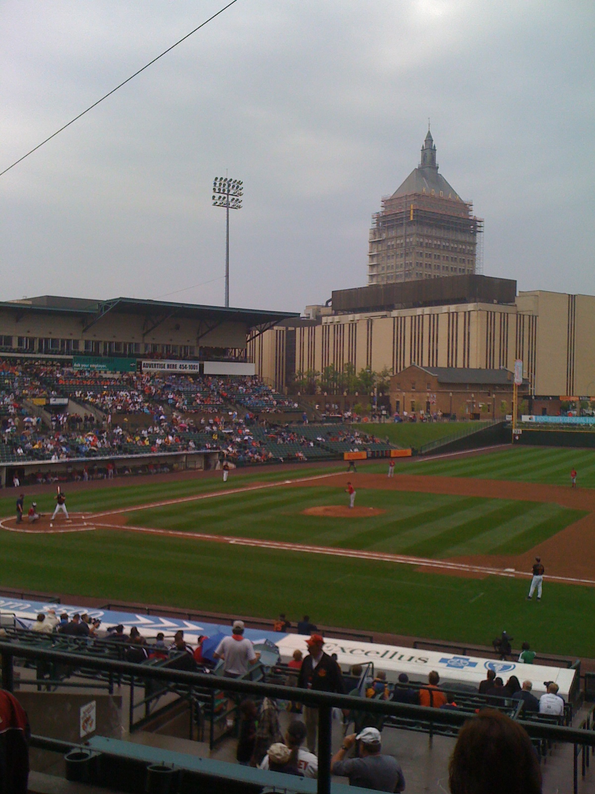 They did not all survive the twelve innings of choice International League four-hour baseball, during which three separate storms drenched the assembled. But they were enough to cheer any jaded fan. A kind of wider view, with the Kodak Building, image right: