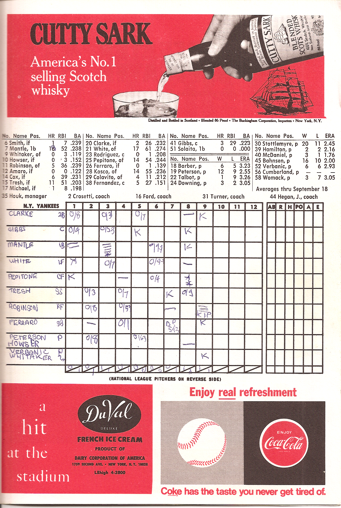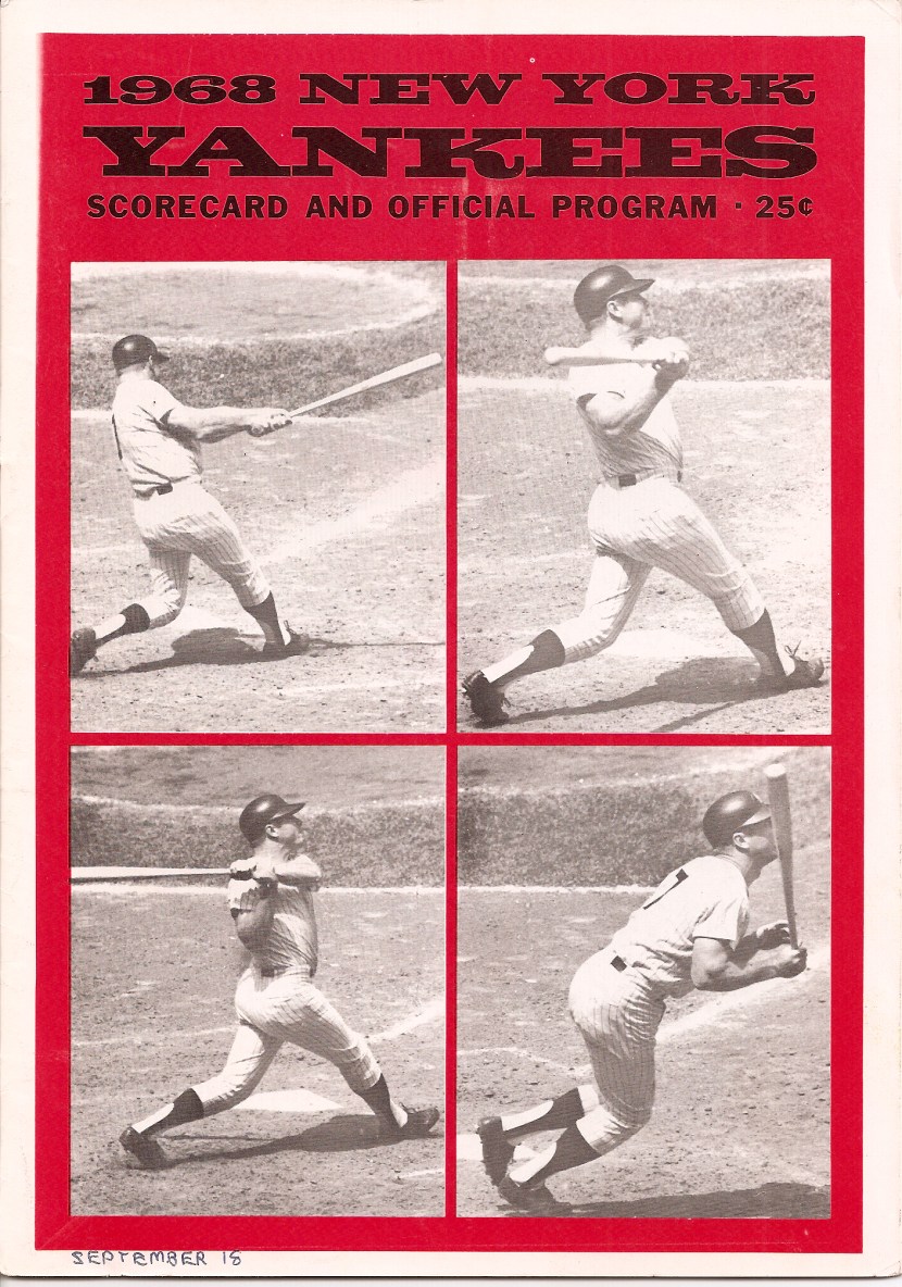 But my favorite rediscovered find is a (slightly) mislabeled 1968 Yankees’ scorecard. The reason I’m showing the cover will be explained below.