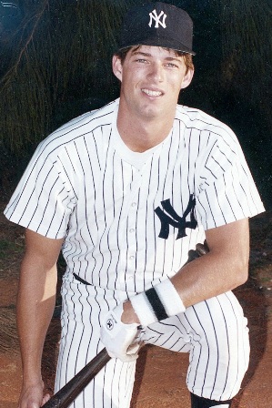 I think most of these guys are obviously neither of our unidentified Yankees. One bears a remote resemblance – I’d suggest Scott Benedict, later a renowned high school coach in Florida, might just be Yankee #1, but the chest hair and the chin in the identified shot suggests otherwise. But do you see that shot of Brian Ryder with the then-Reds farm team, the Indianapolis Indians, from 1982. We may have a winner.