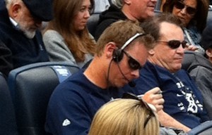 Brett Weber, the Yankees’ coaching assistant, was nowhere to be found Saturday after my little tweeted photo of him giving hand signals to Alex Rodriguez in the on-deck circle landed in the Commissioner’s Office. But for Sunday’s finale against Detroit, the former minor league pitcher was had returned to the third row back of the plate at Yankee Stadium. I didn’t stare at him – when I don’t give away my seats to Make-A-Wish I am there to watch the game – but I saw no signals today and only one player (Rodriguez) even looked fleetingly in his direction. MLB reportedly accepted the Yankees’ explanation that he was only indicating pitch speed on Opening Day because the team’s stadium scoreboard gun was busted.