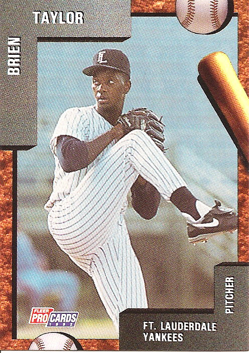 Brien Taylor was the real deal. I saw him pitch at New Britain, Connecticut. Not only have I never seen anybody throw harder, I’ve never seen anybody throw as effortlessly. His 100-MPH pitches seemed to be thrown about 5% harder than his warm-ups. You couldn’t see any of them from the stands. And then there was a brawl in a bar, and his brother was in trouble, and he went in to help him, and they tore his pitching arm to shreds.