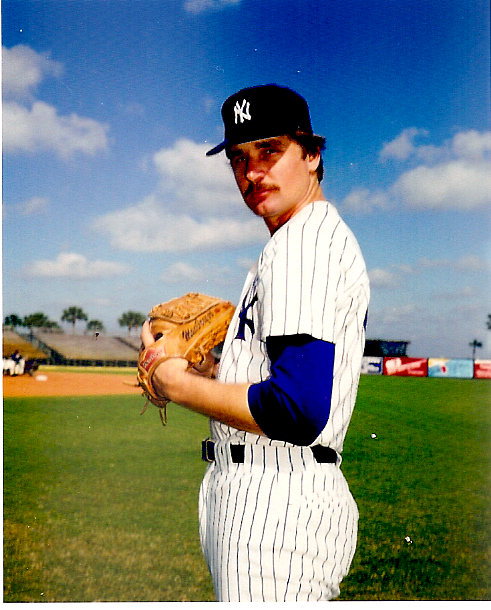 Lastly superb piece by Tom Dinard on one of the favorites of the Yankees’ media relations’ department, Stefan Wever, and the extraordinary life he’s led in the thirty years since his one and only appearance in a major league uniform, a single start for the 1982 Yanks. Take the time to read it all – well worth it. There aren’t a lot of color images of Wever in a Yankee uni — here’s one: