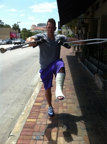 Logan Morrison of the Florida Marlins (@LoMo on Twitter) and yours truly (@KeithOlbermann on Twitter) are both out with left foot injuries. His is a sprained arch plus ligament damage to the top of his foot. Mine is a stress fracture on the top of my foot. He’s in a hard cast till next week, on crutches; I’m in a soft cast, on a cane.