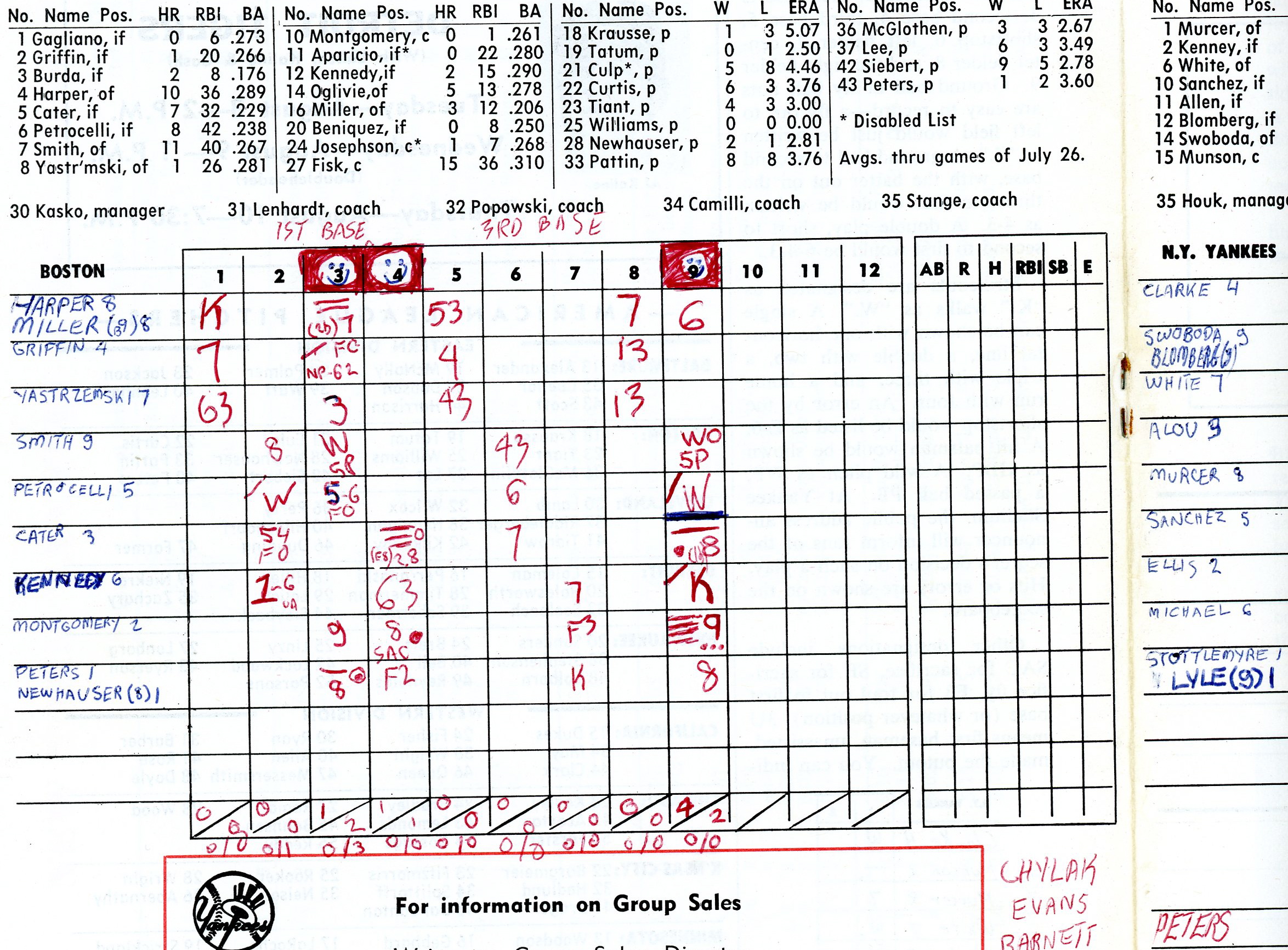 I was not happy. And this is not memory speaking. It took me five minutes to find my scorecard. The blasphemies directed at Manager Houk (“Lyle? 2 Days in a row…You are a fool!”) will not be illustrated here. The scorecard will: