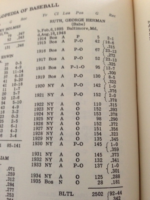 And – you’re right – Ruth’s entry is the most sophisticated one in the book because he was a pitcher and a position player!Â