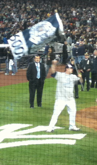And if you think anything has really changed from the baseball of 1894 and the Temple Cup, consider a detail from one of the magazine photos, with a detail of a shot I took after Game Six of the 2009 World Series, which took place literally the other side of the Harlem River, no more than a thousand yards from Game Four of the 1894 Temple Cup. Mr. Jouett Meekin on the left; Mr. Joba Chamberlain on the right.