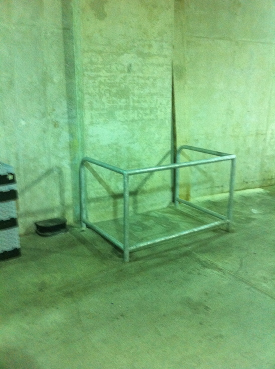 Since the new Stadium opened a year ago, media have noticed this odd scene — just to the visitors’ side of the area behind home plate —  in the giant aqueduct-sized main tunnel that connects the clubhouses and runs from one end of the park to the other (forgive the eerie green colors, that’s pretty much what it looks like back there):