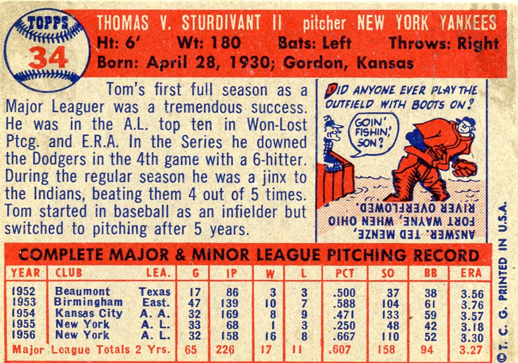 But in ’57 that message hadn’t gotten through yet, so there he is: that great New York Yankees starting pitcher…Tom Sturdivant?