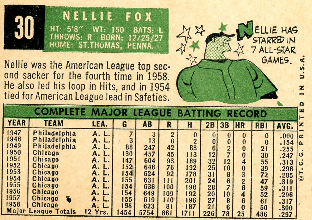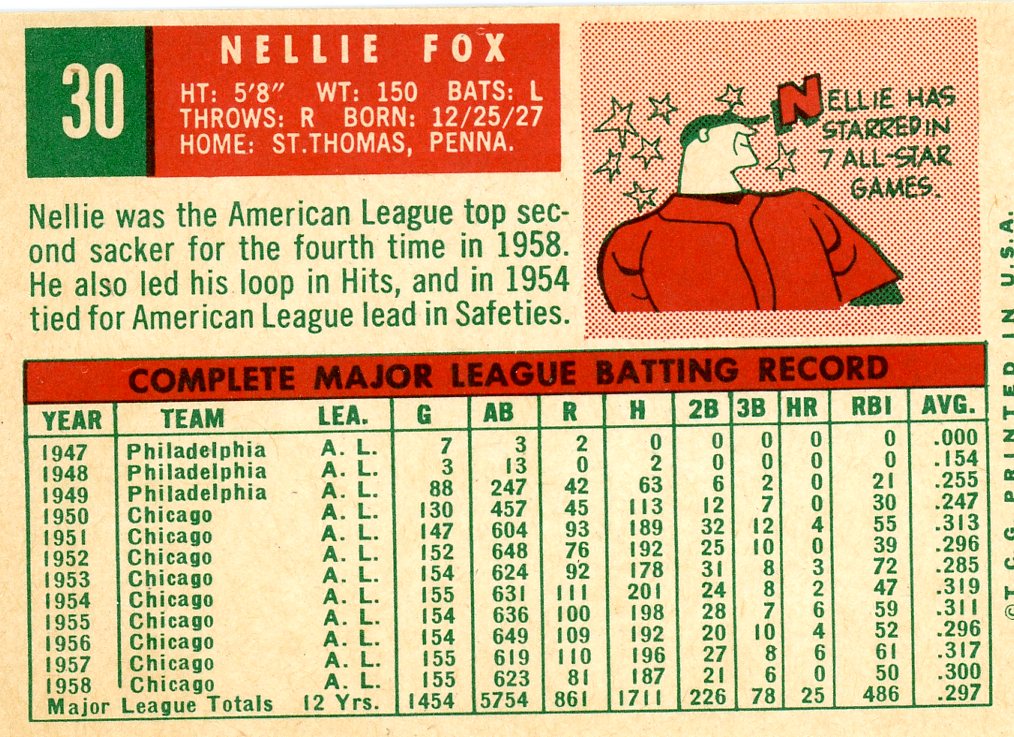It was a pretty good guess on the part of Topps: Nellie Fox would be American League MVP as his White Sox won the pennant for the first time in 40 years.