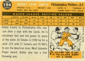 All the Sample cards were drawn from the first series – except in 1960. See that nice unspectacular version of #66, Bobby Gene Smith?